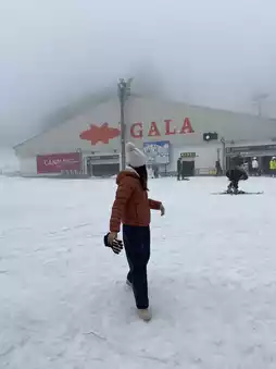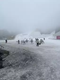 ✨When you're ready, we take the cable car to go up to the snow field! Along the way, you'll see a wide view. The higher you go, the more snow you'll see. But because there's a lot of fog, you can't see much.