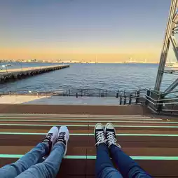 A great spot is Osanbashi Pier, where you get an unobstructed view of the skyline, Cosmo Clock, and Landmark Tower. For a unique experience, ride the Ferris wheel for a panoramic view of the bay as the sun sets.