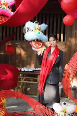 Cherry blossoms fall beside the ancient-style tea room. Take a photo with the auspicious red lion🦁, sip spring tea, and capture the poetic charm of Jiangnan.