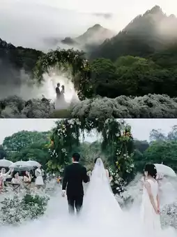 1️⃣ 15,000㎡ Houguan Grass Lawn: Decorate with white flowers and greenery arches, and when the mist rolls in, it’s like stepping into a fairy tale. Even rain can’t ruin the vibe—just grab a clear umbrella, and the romantic atmosphere doubles. Who doesn’t love that dewy charm?
