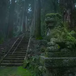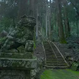The torii gates, Komainu, and stone steps are covered in thick moss, and the sunlight filtering in through the gaps in the trees was fantastic.