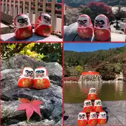 💞: This lucky temple also has an important symbol, the "Daruma doll of victory". The Daruma doll is a bright red doll made of Japanese paper that looks like a tumbler doll. 🪆👺
