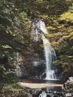 •	Minoo Waterfall in full frame with forest backdrop