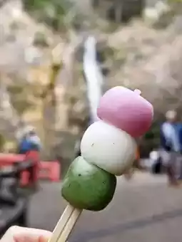 For a more enriching itinerary, you can also visit Minoo Falls on the same day. Minoo Falls is another famous spot for autumn foliage. Near the falls, you can try the local specialty—fried maple leaves 🍁—or enjoy kawadoko cuisine during summer. When I visited in February, there were no maple leaves or kawadoko cuisine, but I did buy some soft and chewy dango 🍡. Don't just focus on taking photos 📷 of the waterfall; the beautifully designed manhole covers nearby are also worth capturing as a unique souvenir.