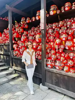 The atmosphere is wonderful, and the temple is very spacious. You can easily spend a whole day there. There are several stands where you can stamp your Daruma dolls, making it a perfect Daruma doll.