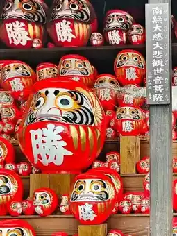 The temple is called the "Victory Temple" because daruma dolls symbolize triumph. Most visitors come to pray, renting a daruma doll, writing their name on it, and making a wish. They then leave the doll at the temple. If their wish comes true, they return to rent a larger daruma as a gesture of gratitude.