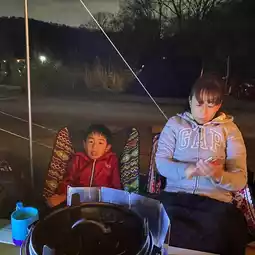 We brought a portable power source into the tent and used a heated carpet to sleep warmly!