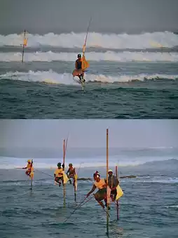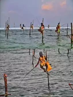 🌟Special highlights: There is a unique Sri Lankan fishing method here called 'stilt fishing'. Fishermen sit on wooden poles erected in the sea, as if they are fishing on stilts, calm and composed.