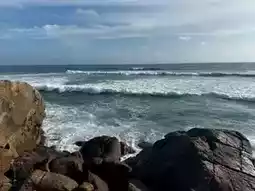 You walk up a short dirt path and palm trees everywhere, ocean breeze in your face, and waves crashing down below. It’s one of those spots where you just wanna flop down, take a deep breath, and stay a while. Super chill. Super pretty.