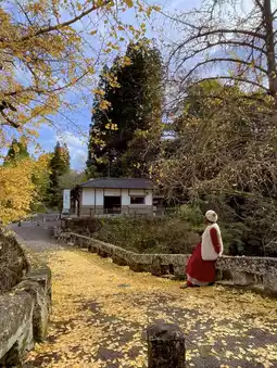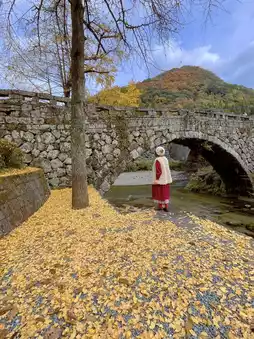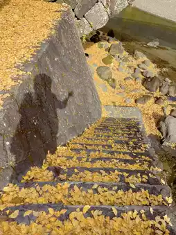 There is a large ginkgo tree near the bridge, so during the autumn foliage season, a carpet of ginkgo leaves forms, making it a popular photo spot😊📸🍁