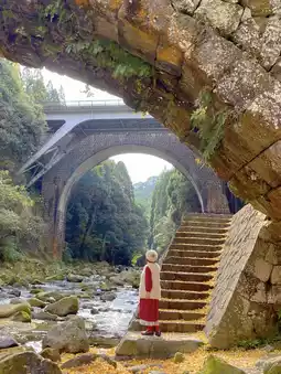 This bridge is a stone bridge that spans the area where the Shakain River and Tsuru River meet, and it is very atmospheric🥹