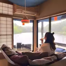 The Yawatauma Lounge is a hidden gem that overlooks the large pond that spreads across the vast 750 square meters of Aomori-ya's grounds and the park lined with old houses with thatched roofs👀✨