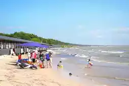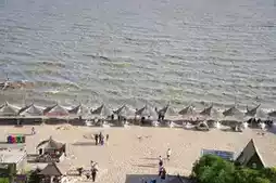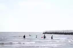 Beach, bathing area, big waves, looking at Russia from the 'seaside'~