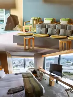 The hotel exterior is simple yet stylish, perfectly blending with the surrounding natural scenery. It is located in a prime location, very close to Mishima Station, making it very convenient to travel. Whether you want to take the Shinkansen to other cities or visit attractions around Mount Fuji, it's super convenient. Plus, you can quickly reach the famous Mishima Taisha Shrine from the hotel and experience the mysterious atmosphere of the ancient shrine.