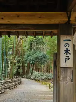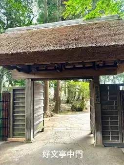 A thatched roof gate between the cedar grove and Kobuntei.