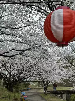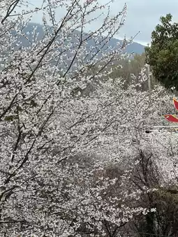 It attracts everyone with its mysterious vermilion torii and thatched wheels. There are many flat parking lots🅿️. Japanese families can be seen everywhere laying mats under the cherry trees to enjoy the cherry blossoms🌸 and have picnics. The breeze blows gently, it is really comfortable!