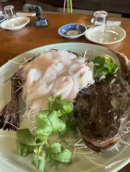 For lunch, we went to the island where the famous restaurant Isaribi is located, which is a favorite of captains and is also visited by celebrities.