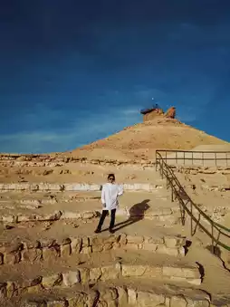As you get closer to Ramon, you enter the vast Negev Desert. The terrain is similar to that of driving on the Pamir Plateau. There are very few cars coming. It feels like walking on the edge of a lonely planet. The air is filled with smoke and it looks like a mirage, which is very spectacular. As you approach the Ramon Sinkhole, the road is winding and steep. The black asphalt road is laid on the yellow-brown desert basin, winding up the mountain in an S shape, which looks a bit like the Panlong Ancient Road. When you see the Ramon Crater under the blue sky of the Middle East, you will feel that Israel, such a small country, has no end in sight.