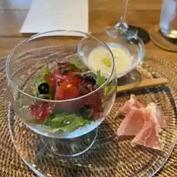 For dinner, we had a French course meal using ingredients from Miyakojima, and the vegetables, fish, and meat all had gentle flavors and were delicious. The portions were just right.