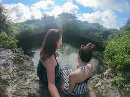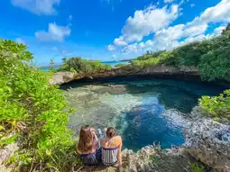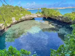 A hidden spot that only those in the know know about!! Picas is a spot that is like a smaller version of the nationally designated scenic spot and natural monument "Shimojishima no Toori Ike" located on Shimojijima Island, with a beautiful circular hole in the reef and an arch-shaped horizontal hole that connects to the sea♡ It's a spot that feels like a hidden place even though it's in the city😆✨
