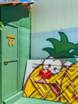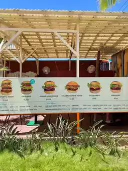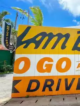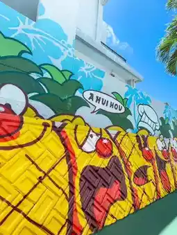 A hamburger shop on Irabujima with cute pop paint art inspired by tropical Hawaiian culture🍔