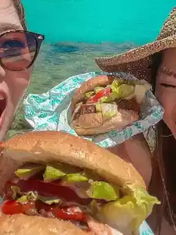 There are seats inside and on the terrace, so you can eat there and then!! We got takeout and ate it at Toguchi Beach nearby 🩵 Eating a hamburger while looking at the beautiful ocean makes it feel even more tropical, it's the best 🥰