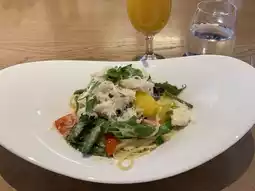 Miyakojima driving trip, it's almost lunchtime and I'm getting hungry. Speaking of Miyakojima, there is the luxury private villa Grand Bleu Gamin. I couldn't stay there, but I went because I heard that I could use it for lunch only. It was just lunchtime, so it was good timing! Lunch course 5,500 yen (excluding tax) There are many à la carte dishes, so I went for à la carte! I want to enjoy various Miyakojima gourmet dishes after this. I ordered tropical mango and garden-style spaghettini with snow crab and Miyako vegetables. It was a good choice! I'm glad I came! The mango juice is just rich.