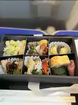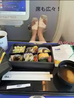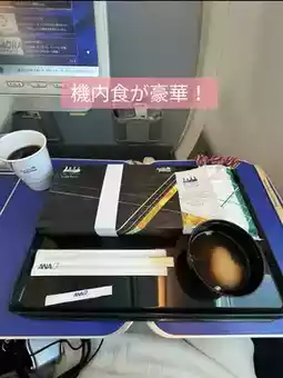 ☑️The in-flight meal is delicious! Japanese cuisine! There's miso soup and a wide selection of drinks to choose from, so you'll be full! ◎