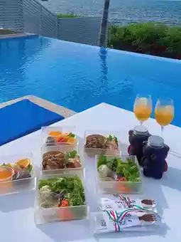 The breakfast was from the Italian restaurant "primonte" on Irabu Island and came in a cute clear box, and it looked and tasted delicious♪