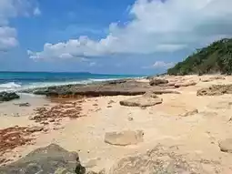 There are many rocks on the bottom, but the beach is quite wide and you can choose a spot, such as sand👍️
