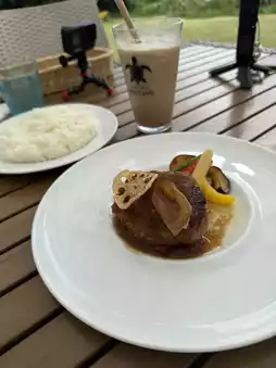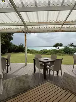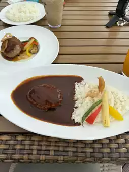 You can enjoy dishes made with Miyako beef and delicious drinks such as mango juice along with the ocean view of Toguchinohama Beach on Irabu Island 🥭
