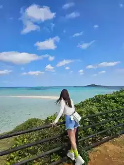 Even when it's not low tide, you can see the beautiful sea, known as Ikema Blue, and the wonderful scenery.