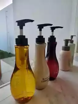 The bathroom also has a stylish bathtub, ReFa straight iron, curling iron, hairdryer, and shower head, providing everything you need.