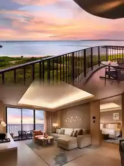The hotel boasts its own private stretch of stunning beach with a winding coastline and powder-soft sand. The views from the rooms are incredible, with floor-to-ceiling windows perfectly framing the endless ocean.🌊 Whether it's waking up to the gentle sound of waves in the morning or enjoying a drink as the sun sets over the orange-hued sea in the evening, it's pure romance.