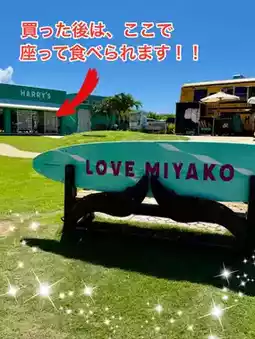 There are several famous garlic shrimp restaurants in Miyakojima, but the one with the best location is "HARRY'S Shrimp Truck", marked by a yellow American school bus!!