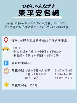 It is a beautiful cape that is about 2km long and 200m wide, located at the easternmost tip of the triangular Miyako Island, jutting out into the sea❣️