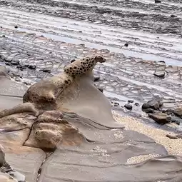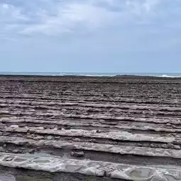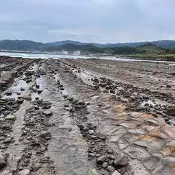 There are wavy rocks around Aoshima, called "Oni no Sentakuita", and it is said that the layers of hard sandstone and soft mudstone that were formed in the sea about 7 million years ago were repeatedly piled up, and over a long period of time, the waves eroded it, leaving only the hard sandstone layers piled up like boards. You can see it around the island.