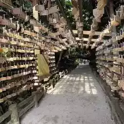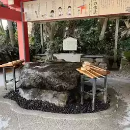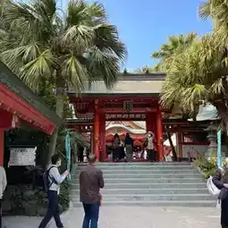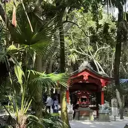 From the train station, I took a 10-minute walk to Aoshima beach. The beach is well-equipped with surf shops and rental services.  The coastal path, surrounded by tropical plants, felt like a different world. I crossed a bridge to reach the Aoshima Shrine, where I found an "ema tunnel" that was interesting. The demon's washing board outside was the most attractive sight to me, and I spent most of my time taking pictures.