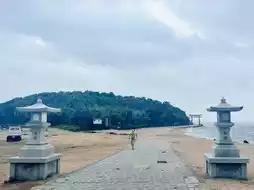 But when crossing Qingdao Shrine ⛩️ must pass through a bridge, it is not fenced in front and back, only the middle part has, the waves will keep hitting the shore, an accidental walk will get wet 😭 we jump jump so walk over 😅