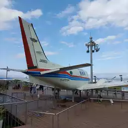 At Miyazaki Airport, the Aviation College's training aircraft is on display on the roof.