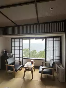 Upgraded Tsubaki Japanese room, can experience tatami ground floor and can sleep very comfortable bed, room 33 square meters large, with bathroom is very large with bathtub and shower, new facilities. Living on the middle floor of the 5th floor, although there are trees but the view is beautiful looking at the sea and sky, if you live higher floor will be more beautiful.