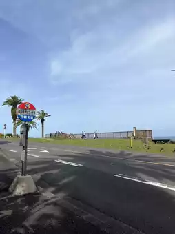 The bus stop is located on the grounds of "Roadside station Phoenix", and facilities such as a product hall and observation deck are also available. In addition, tropical plants such as phoenix, jacaranda, and bougainvillea are planted in the surrounding area, so you can enjoy a stroll while waiting for the bus.