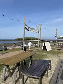 Cafe "uminoie": Situated by the beach, this cafe offers a diverse menu including spice curry, acai smoothies, pita sandwiches, and more. Guests can relax and enjoy the soothing sound of waves as their background music.