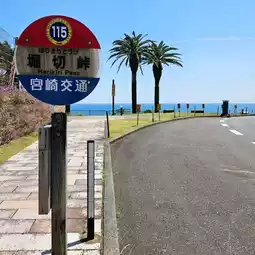 From the center of Miyazaki City, head south on National Route 220, and cross Prefectural Route 377 where it comes out of the mountains and comes along the coast.