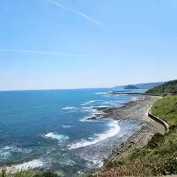 Looking down at the sea from the coast, you can see the strange rock "Oni no Sentakuita" (Devil's Washing Board) peeking through the waves, and the magnificent view that makes you lose track of time spreads out before you.