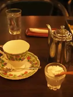 The warm wooden interior is tastefully decorated with antique-style furniture and accessories, creating a serene and leisurely ambiance.