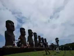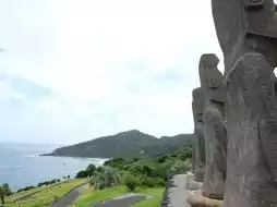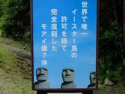 "Sunset Seaview Park in Nichinan". It has seven Moai statues authorized to be 100% reproduced from Easter Island, Chile. It is one of the seven wonders of the world😎😎