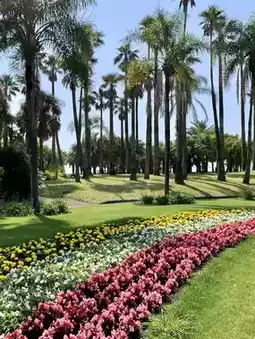 Has a lawn plaza with a tropical atmosphere and a tropical fruit greenhouse where mangoes and other fruits grow