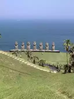 A park with a spectacular view of the ocean, symbolized by the Moai statues