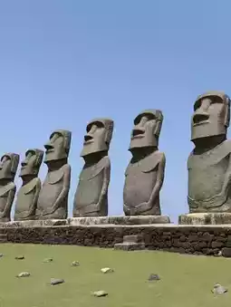 The seven Moai statues are lined up, the only ones in the world that have been granted special permission by the Easter Island Elders' Association